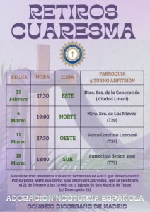 18 febrero, 2026 In General Retiros de Cuaresma 2026 ANE-Madrid, 18 de febrero de 2026.- Se adjunta el cartel de los retiros de Cuaresma 2026.